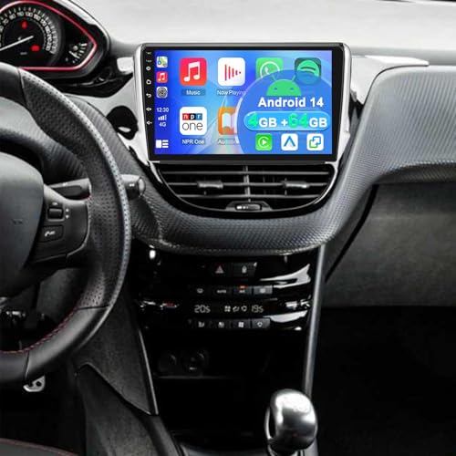 4+64G 2 Din Android 14 Autoradio Multimédia avec sans Fil CarPlay Android Auto pour Peugeot 208/2008 2012-2018, 10 Pouces écran Tactile Radio Stéréo avec Navigation GPS FM RDS SWC Mirror Link Wi-FI