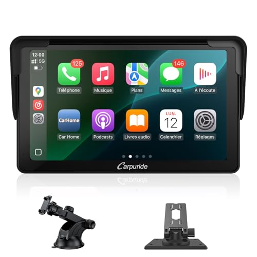 Carpuride Autoradio Portable sans Fil Carplay et Android Auto, 7 Pouces écran Tactile HD 1080p de avec BT 5.0, Support de Liaison Miroir pour Camion, véhicule récréatif
