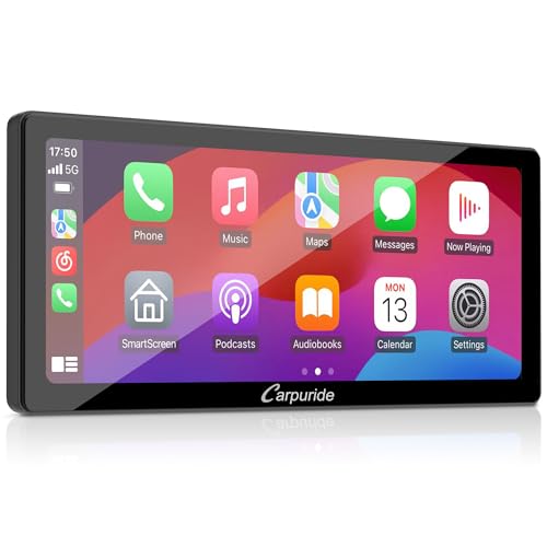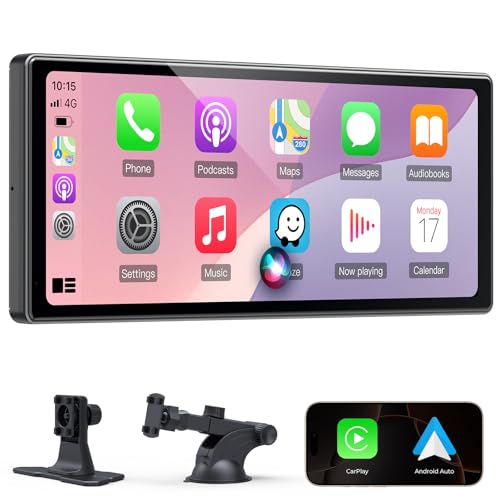 Carpuride W103 Pro avec Transmission Bluetooth sans Fil, Autoradio Portable CarPlay et Android Auto, écran Tactile 10,3 Pouces 1080P, Mirror Link/GPS/Siri/FM, avec 3 Supports