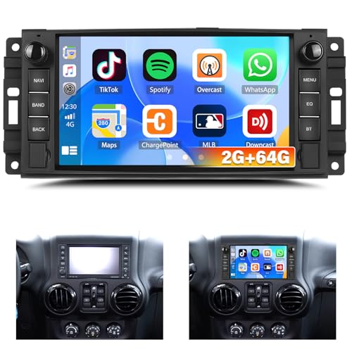 Android 15, 4G+64G sans Fil Carplay Autoradio pour Jeep Wrangler Compass Grand Cherokee/Chrysler 300C/Dodge Ram/Chevrolet, Radio Voiture avec écran 7 Pouces Con Android Auto GPS WiFi Bluetooth FM/RDS