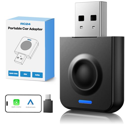 LAMTTO Adaptateur CarPlay sans fil, Mise à Niveau Ultra Rapide Mini 2 en 1 Carplay & Android Auto de Filaire vers Adaptateur sans fil avec prise en Charge OTA, Type C/USB Plug-Play, iOS 10+/Android11+