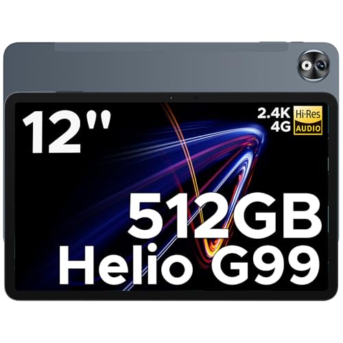 DOOGEE T40 Pro Tablette 12 Pouces - 20GB RAM+512GB ROM(TF 2TB), 10800mAh Helio G99 Android Tablette Tactile 4G LTE, Tablette Gaming Écran 2.4K/16MP+8MP/4 Haut-parleur/7mm Corps/Double SIM/GPS, Gris