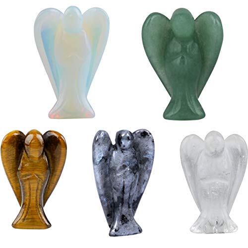 mookaitedecor 5 Pièce Cristal de Roche Ange Decoration,Pierre Guérison Figurine Ange Gardien de Poche Porte Bonheur Statue,1.5 Pouce