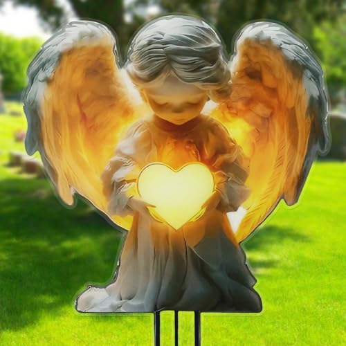 Zidoley Ange Decoration Cimetière, Piquet De Décoration Jardin en Acrylique, 2D Angel Deco Jardin Exterieur Étanches, Décoration Funéraire pour Tombe, Piquets De Cour des Anges (Ange Debout)