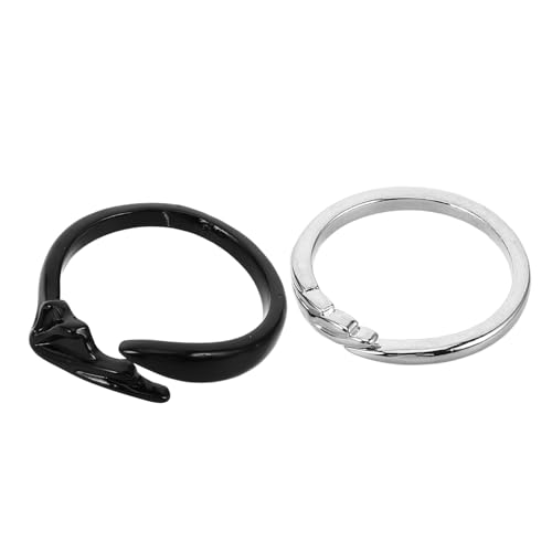 TEHAUX Lot de 2 Bagues Ajustables Ange et Démon pour Couple, Alliage de Zinc Argenté et Noir, Ouverture Réglable, Anneaux Chics pour Présent Saint-valentin ou Anniversaire, Bijoux Légers