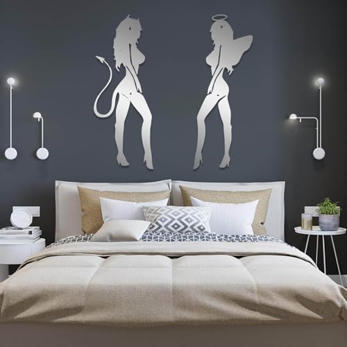 Grande décoration Murale Abstraite en métal représentant Un Ange et Un démon, sur Le thème des Contes de fées, pour Chambre ou Salon (Argent, 76 x 29 cm).
