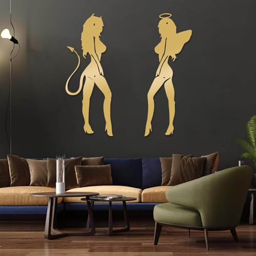 Grande décoration Murale Abstraite en métal représentant Un Ange et Un démon, sur Le thème des Contes de fées, pour Chambre ou Salon (doré, 76 x 29 cm).