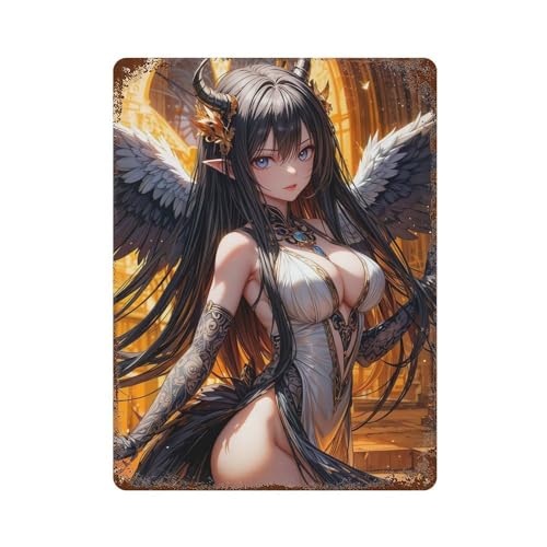 sinyumoney Affiche murale rétro métal style anime fille ange démon 30 x 20 cm (11,8 x 7,9 pouces) - Décoration murale pour bar, café, garage ou salle de jeux