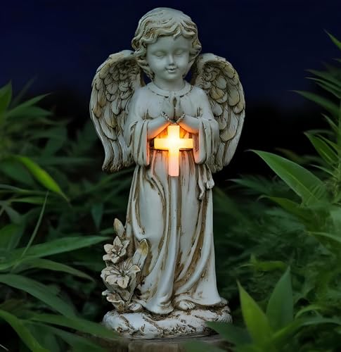 Générique Statues et Figurines d'- Résine résistante aux intempéries, énergie Solaire,Décor extérieur pour Jardin avec Statue d'ange,pour extérieur, Jardin, cimetière, Femme, Maman, Anniversaire,