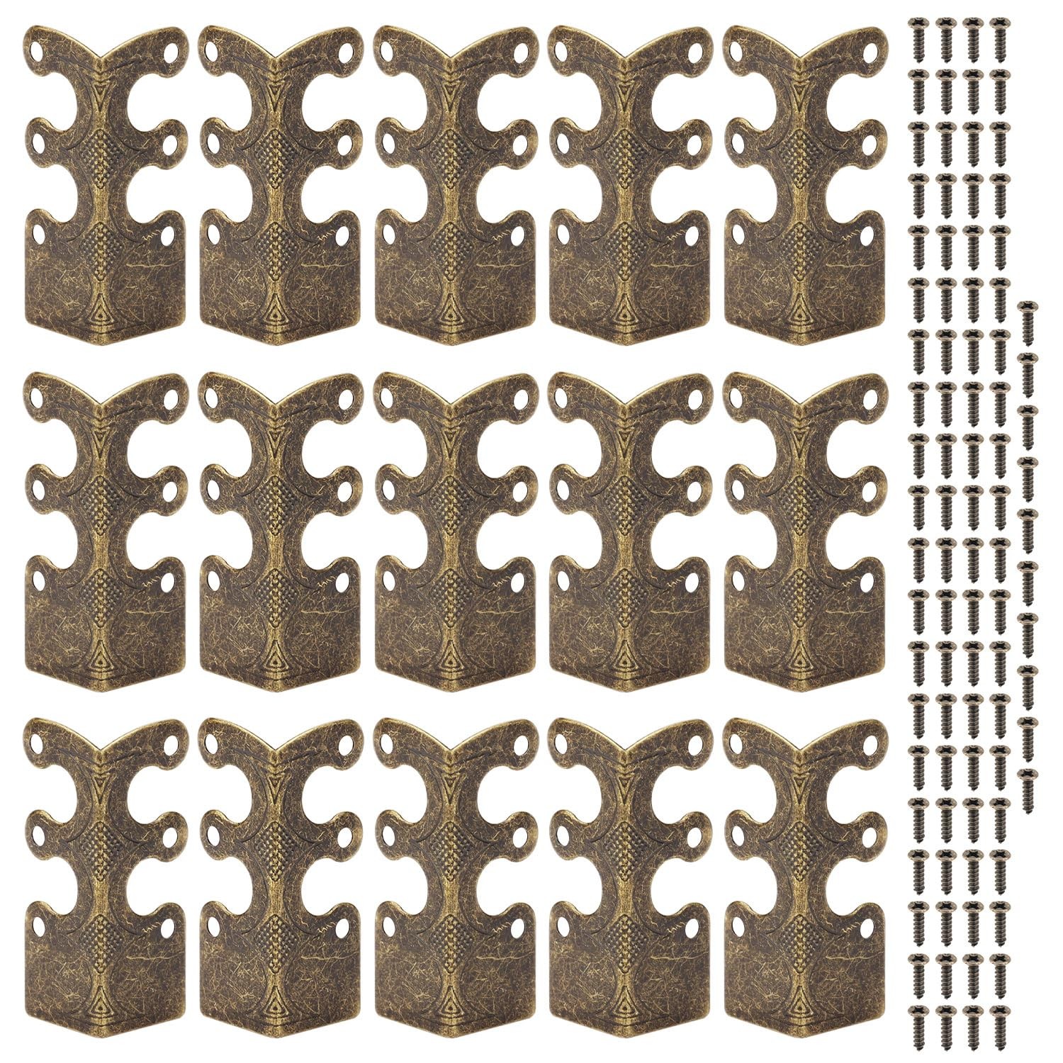 24pcs Protections d'angle en Métal, Rétro Protections d'angle de Plinthe Solides Protections d'angle de Plinthe Coins Décoratifs Endommagés pour Table Armoires Meubles (Bronze)