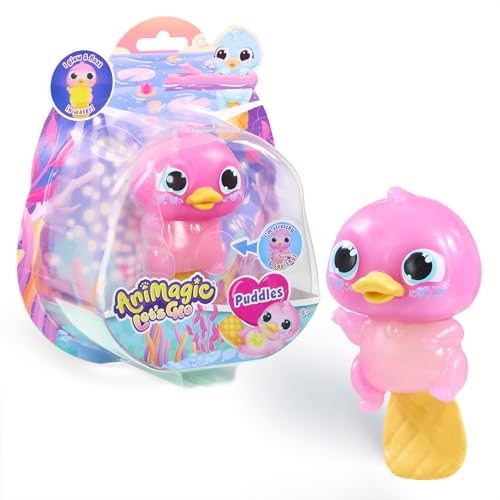 Animagic – Let’s Glo Platypus Rose – Jouet Sensoriel Lumineux & Aquatique - Compagnon Intéractif ASMR - S’étire, S’écrase & S’illumine - Flotte dans l’Eau - Jouet Enfant 4+ Ans - Cœur Caché Magique