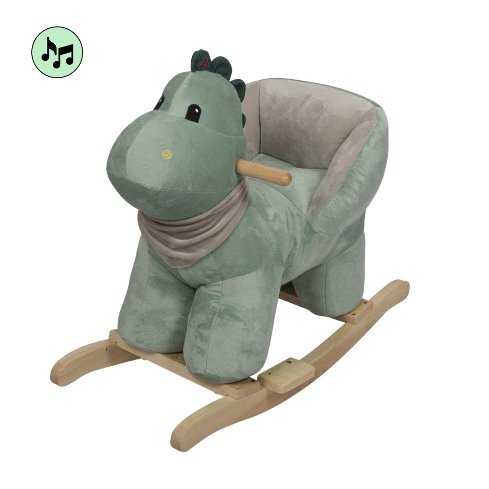 AIYAPLAY Animal à bascule, dinosaure à bascule, bruits d'animaux interactifs, rembourrage doux, cadre en bois, ceinture de sécurité, peluche, pour enfants 1,5-3 ans, max. 25 kg, vert