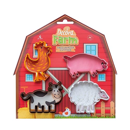 Decora 0255040 Set of 4 Farm Animal Cutters, Plastic