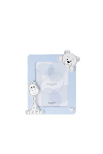 VALENTI & CO. Cadre photo bleu ciel en bois avec animaux du zoo, table ou à accrocher comme décoration dans la chambre, idée cadeau pour bébé et enfant - 13 x 24 cm