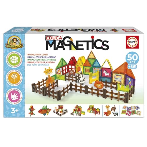 Educa - Magnetics Zoo du Parc | Jeu éducatif de Construction magnétique 3D de 50 pièces pour Enfants. Comprend 4 Animaux et 8 Cartes. Construisez des Figures géométriques. A partir de 3 Ans (20270)