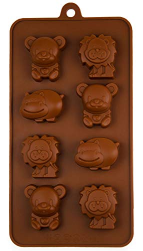 Moule en silicone avec animaux du zoo, moule à chocolats, moule à glaçons, moule en silicone, 20 x 10,5 x 2 cm, décoration de gâteau, lion, ours, hippopotame, jungle, gâteau décoratif, couleur :