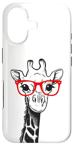 Girafe avec Lunettes Rouges Cadeau pour Les Amoureux des Animaux du Zoo Coque pour iPhone 16