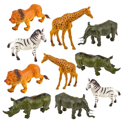 Baroni Toys Lot de 10 Animaux en Plastique Réaliste, Animaux du Zoo Assortis max 15 cm y Compris Lion éléphant Rhinocéros Girafe Zèbre pour Enfants 3 4 5 6 7 Ans