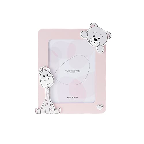 VALENTI & CO. Cadre photo rose en bois avec animaux du zoo, table ou à accrocher comme décoration dans la chambre, idée cadeau pour bébé et enfant - 13 x 24 cm
