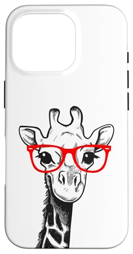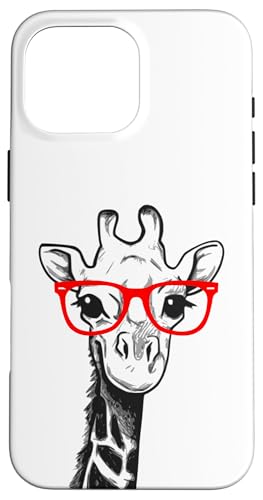 Girafe avec Lunettes Rouges Cadeau pour Les Amoureux des Animaux du Zoo Coque pour iPhone 16 Pro