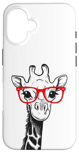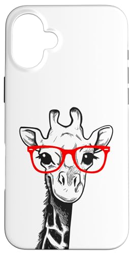 Girafe avec Lunettes Rouges Cadeau pour Les Amoureux des Animaux du Zoo Coque pour iPhone 16 Plus