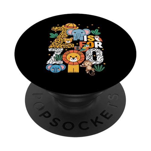 Z est pour Les Animaux du Zoo, Excursion au Zoo, journée au Zoo dans la Jungle PopSockets PopGrip Adhésif