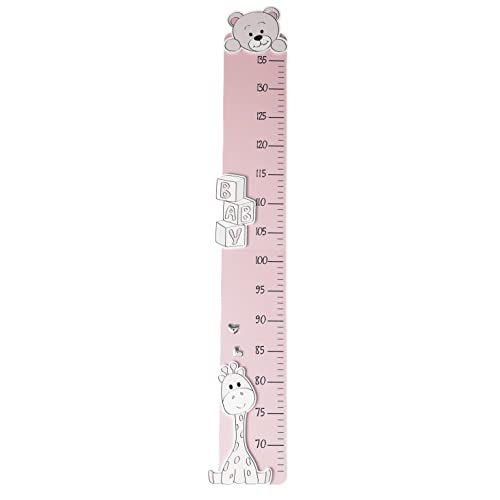Valenti & Co - Mètre rose en bois pour enfants, décoration de chambre avec animaux du zoo et détails en argent