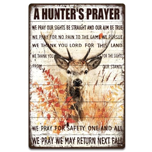 SUPERDANT Plaque Metal Vintage Cerf Prière De Chasse Panneau Vintage Texte Prière Plaque Murale Decorative Animaux Campagne Pour Porte Ferme Jardin Salon Panneau Decoratif Exterieur Metal 30x20cm