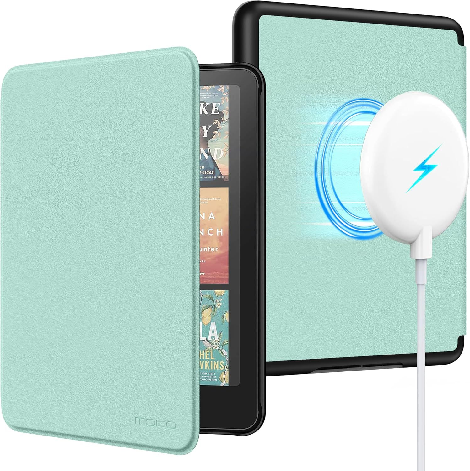 MoKo Étui Magnétique pour 7"/6,8" Kindle Paperwhite Signature Edition(12e/11e Gén-2024/2022) et Kindle Colorsoft, Compatible avec iphone Magsafe for Samsung/Anker Wireless Charging, Céladon