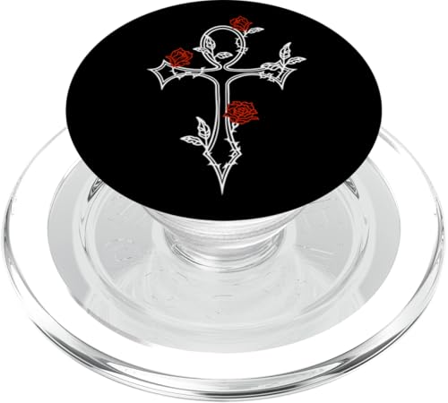 Symbole Gothique et égyptien Ankh avec Roses Rouges Gothique PopSockets PopGrip pour MagSafe