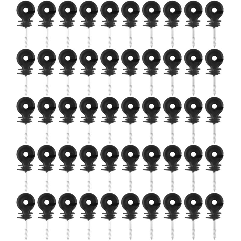 Isolateurs à anneau à vis noirs, accessoires de clôture électrique pour poteau en bois, 50 pièces/ensemble