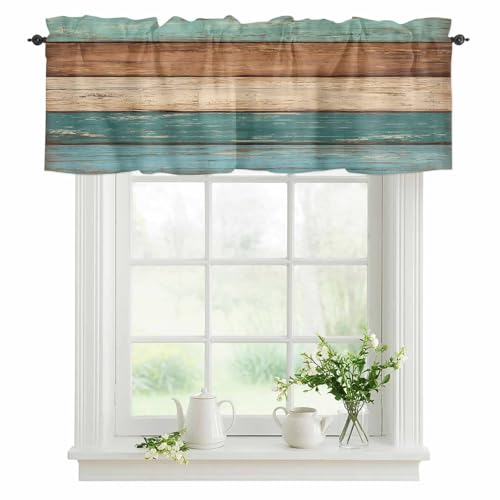 1 Rideau de cantonnière Rustique pour fenêtre de Cuisine, Style rétro en Bois avec Passe-Tringle, Vert Sarcelle, Marron, 137,2 x 45,7 cm