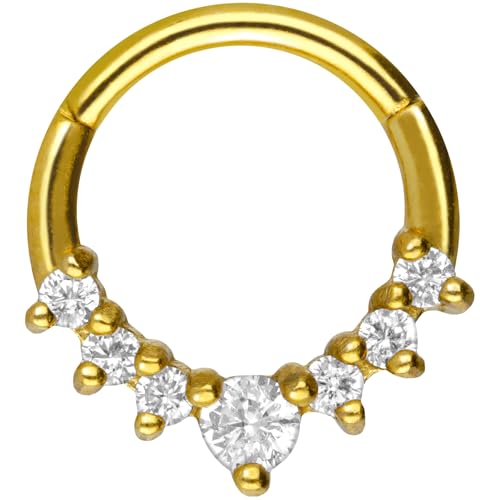 PIERCINGLINE Anneau segmenté à clicker avec 7 cristaux en acier chirurgical – Piercing pour nez, septum, oreille, hélix ou tragus en 4 couleurs, Acier inoxydable