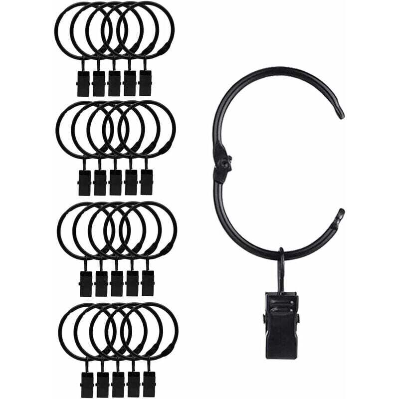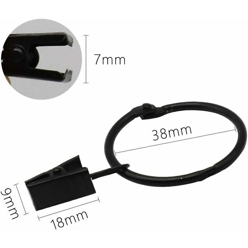 20 Pièces Noir Anneaux à Pince à Rideau en métal Ouvrants, Ouverture et Fermeture faciles, diamètre intérieur 38 mm, pour Rideaux Lourds et Rideaux