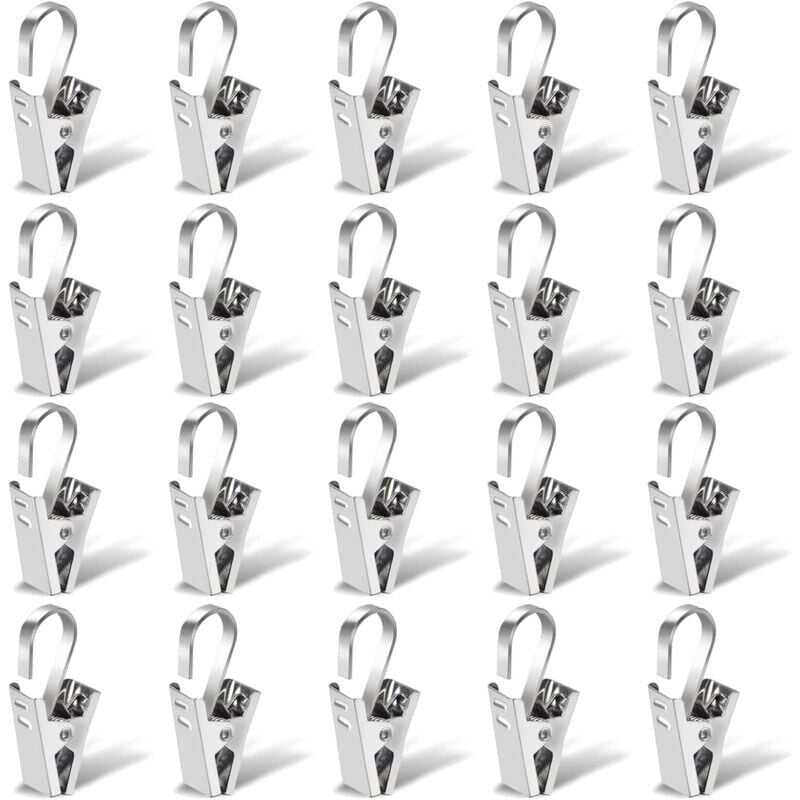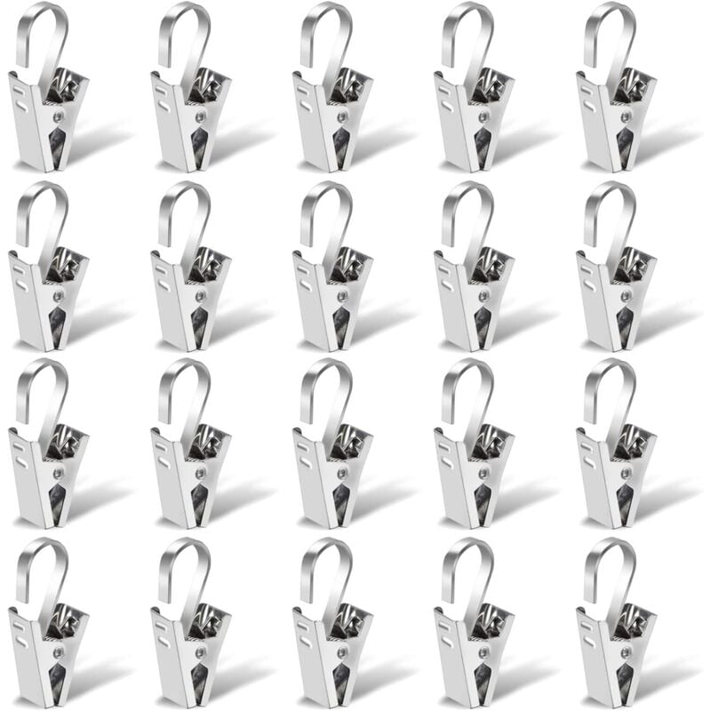 Anawakia Lot de 20 Crochet à Pince Clips pour Rideaux Anneaux à Pince, Clips de Rideau, Clips de Rideau en Acier Inoxydable avec Crochets (Argent)