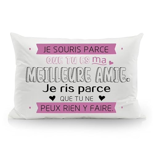 Je Souris Parce Que tu ES ma Meilleure Amie Je RIS Parce Que tu ne Peux Rien y Faire Taies d'oreiller rigolotes pour Femme Meilleure Amie Anniversaire Cadeau de Noël Cadeau d'amitié