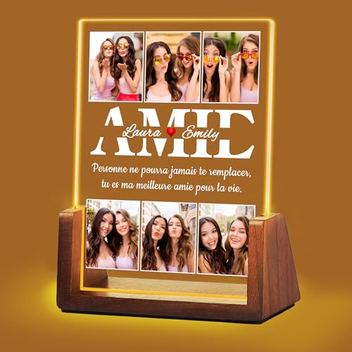 Idiyfun Cadeau Meilleure Amie Personnalisable pour Amie, Lampe Personnalisée avec Photo et Texte,Cadeau Cadre Photo Personnalisé, Meilleure Amie Cadeau, Cadeau Anniversaire Femme, Cadeau Amie Femme