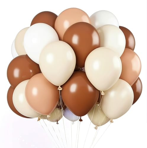 UDRKFOPK Ballon Marron,60 Pièces12 Pouces Bruns et Blancs Ballons Anniversaire Latex Hélium Ballon,Ballon Fete pour Fête à Thème Filles Anniversaire Baby Shower Mariage Fête Décorations