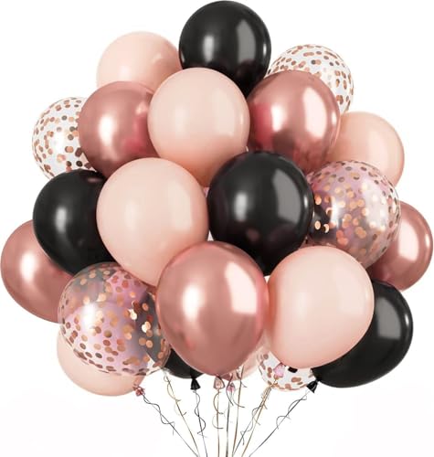 UDRKFOPK Ballon Or Rose et Noir,60 Pièces12 Pouces Ballons Anniversaire Latex Hélium Ballon,Ballon Or Rose Ballon Fete pour Fête à Thème Filles Anniversaire Baby Shower Mariage Fête Décorations