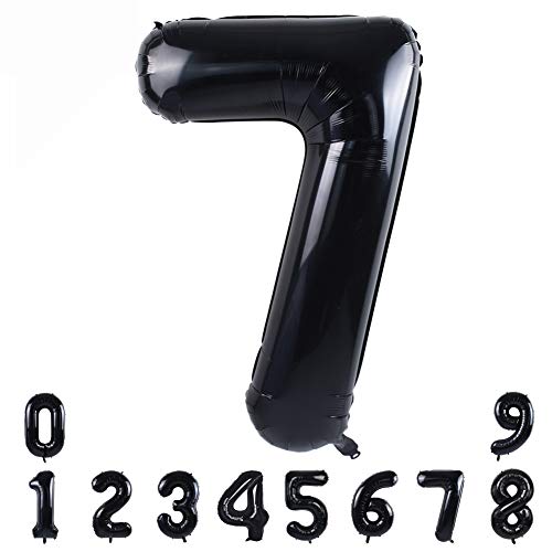 TONIFUL Geant Ballon Chiffre Numéro 0 to 9 Anniversaire Chiffres Noir Ballon, 40 Pouces Numéro 7 Hélium Foil Géant Numéro Ballon Décoration Grand Nombre de Ballons Fête Festival Mariage Party (7)
