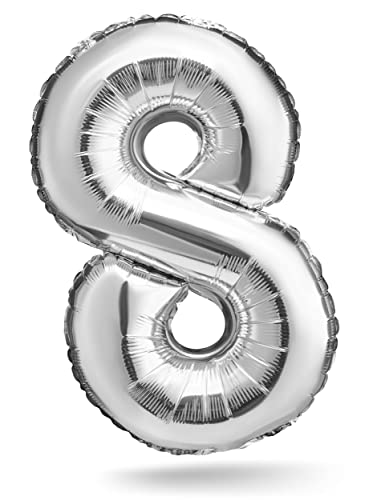 Ballon numéroté, argenté, 40 cm, décoration d'anniversaire, anniversaire d'enfant, jubilé, cadeau Ballon,pour air ou hélium comme anniversaire, mariage fin de fête décoration surprise (chiffre 8)