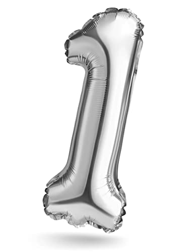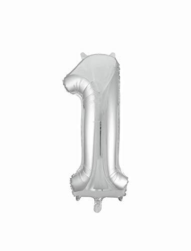 BALINCO, Ballon Numéroté, Décoration Anniversaire d'Enfant, Cadeau Ballon en Plastique, pour Air ou Hélium comme Mariage, Fin de fête Décoration Surpris, Jubilé, Argenté, 40 cm, (chiffre 1)