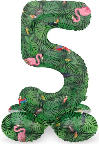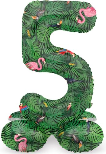 Folat 63945 Ballon Aluminium Numéro avec base Chiffre 5 Jungle Vibe 72 cm-Pour Date, Anniversaire, Décoration, pas besoin d'hélium, Vert