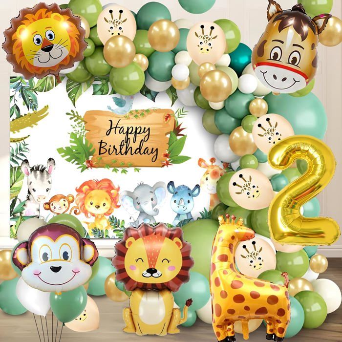 Jungle Décoration 2 Ans Kit Animaux Ballons 80 Pcs Safari Fête Vert Ballon Helium Forêt Anniversaire Garçon Fille Enfants