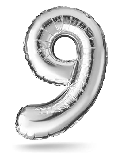 Ballon numéroté, argenté, 40 cm, décoration d'anniversaire, anniversaire d'enfant, jubilé, cadeau Ballon en plastique pour air ou hélium comme anniversaire, mariage fin de fête (chiffre 9)