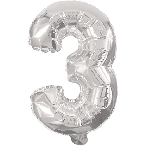 Ballon numéroté, argenté, 40 cm, décoration d'anniversaire, anniversaire d'enfant, jubilé, cadeau Ballon en feuille pour air ou hélium comme anniversaire, mariage fin de fête (chiffre 3)
