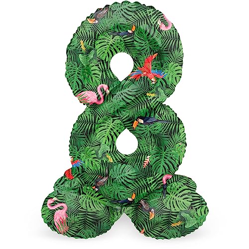 Folat 63948 Ballon Aluminium Numéro avec base Chiffre 8 Jungle Vibe 72 cm-Pour Date, Anniversaire, Décoration, pas besoin d'hélium, Vert