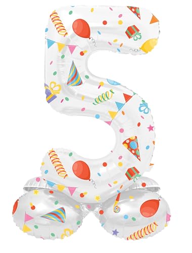 Folat 63965 Ballon Aluminium Numéro avec base Chiffre 5 Joyful Party 72 cm-Pour Date, Anniversaire, Décoration, pas besoin d'hélium, Multicolore