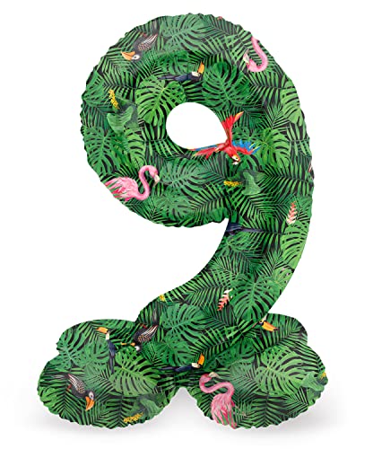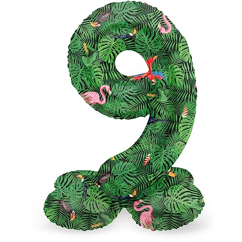Folat 63949 Ballon Aluminium Numéro avec base Chiffre 9 Jungle Vibe 72 cm-Pour Date, Anniversaire, Décoration, pas besoin d'hélium, Vert
