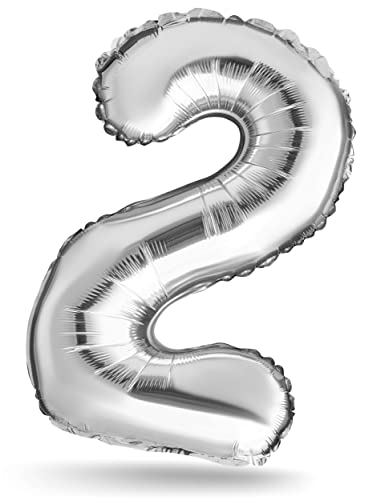 Ballon numéroté, argenté, 40 cm, décoration d'anniversaire, d'enfant, jubilé, cadeau Ballon en plastique pour air ou hélium comme anniversaire, mariage fin de fête décoration surprise (chiffre 2)